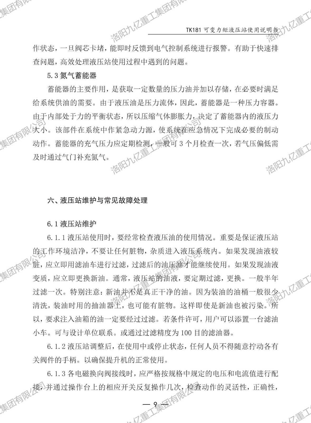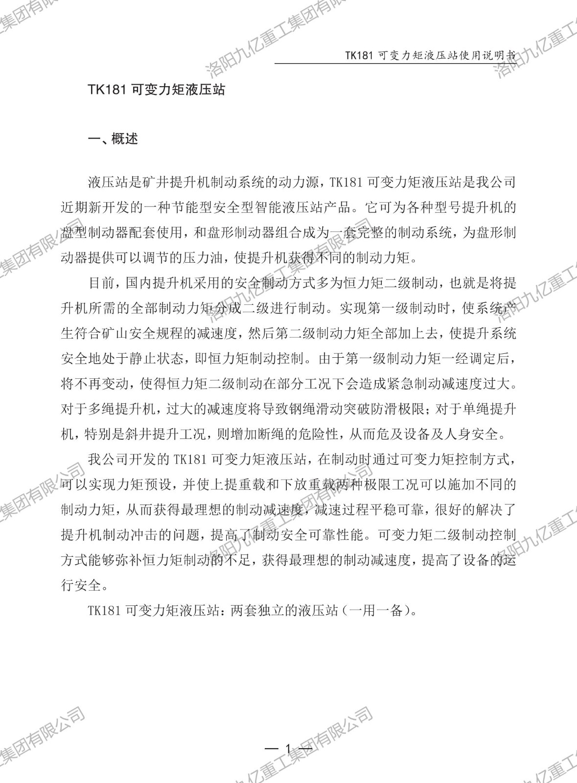 可變力矩液壓站TK181使用說(shuō)明書(shū)