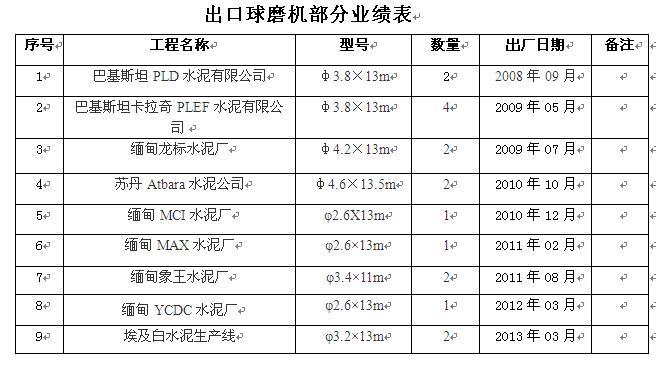 磨機部分業(yè)績(jì)表