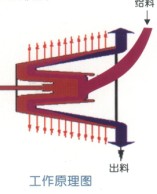 物料經(jīng)掛有搪瓷的給料管及篩座進(jìn)入篩藍的底部,篩藍內的物料受離心力作用緊貼篩面,在振動(dòng)力作用下,料層均勻地向篩藍大端移動(dòng),脫水后的物料從篩藍四周甩出,落入機殼下部的排料口。向下排出。物料中的水分,在離心力作用下透過(guò)料層和篩縫,甩向機殼四周,沿殼體壁流向排水口排出。